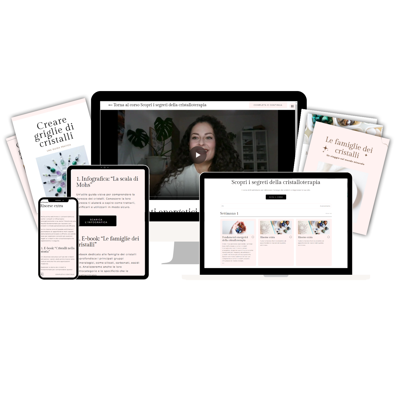 Questo non è un corso qualsiasi, ma un percorso completo e strutturato, pensato per portarti dalla confusione alla comprensione e padronanza totale dell’energia dei cristalli.